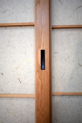 Each pair of shoji will be joined to function as one sliding door using the hardware pictured above. The picture below is of the joinery strap at the top of the shoji. These pictures are from a different order which is why the wood (Cherry not Beech) is different. Client has their own tracking. Pictures of Rockridge on the portfolio page.